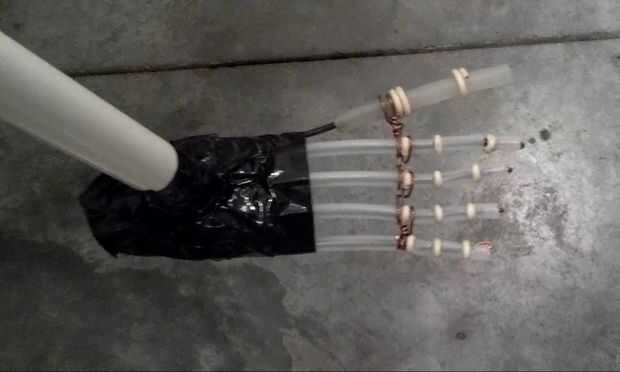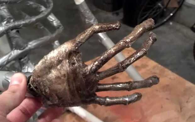Cuando los dedos y dedos de los pies fueron acabados, fueron cableados para crear las manos (o pies). Luego fueron sujetados al hueso de brazo/pierna inferior usando alambre de colgador de ropa.