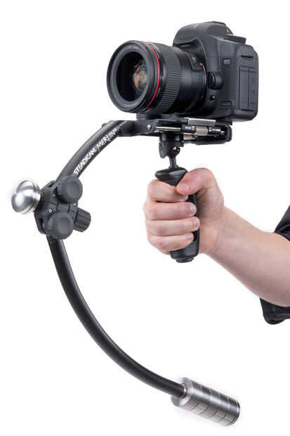 El Steadicam es diseñado para dar cabida a grandes cámaras de vídeo profesionales. Como resultado, el sistema tiene contrapesos pesados y requiere de un sistema de apoyo considerable. Pero cuando se trabaja con pequeñas cámaras de apuntar y disparar, el sistema puede simplificarse enormemente. Pueden quitarse el chaleco, el brazo iso-elastico y el cardán y las pesas estabilizadoras pueden fijarse directamente a la cámara. Este es el diseño básico de los estabilizadores de cámara en mano como el estabilizador Merlin.