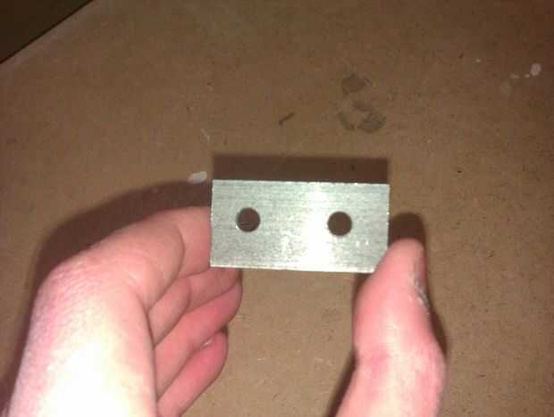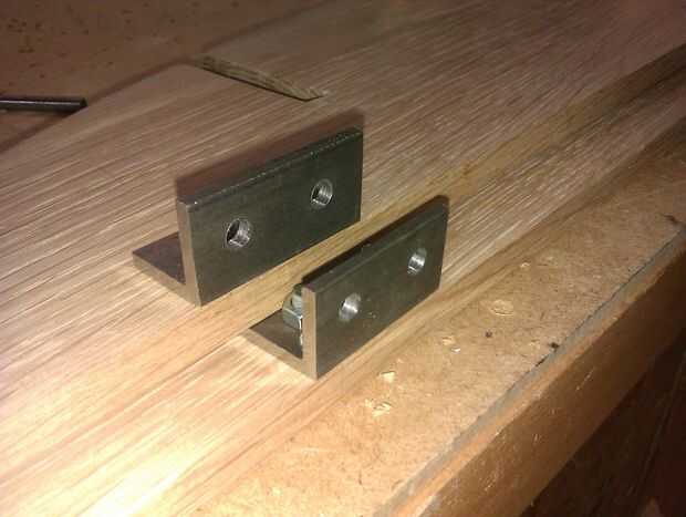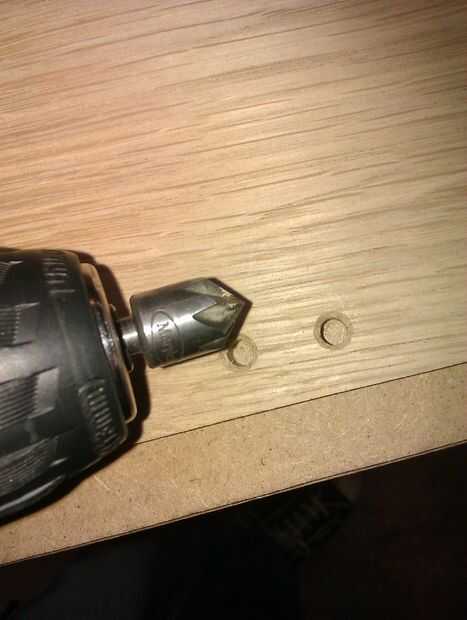 Hoy hice mi plantilla cuarta, consiste en una tira de metal con dos agujeros perforados a través de él. Se utilizará para hacer los agujeros en cada soporte. He utilizado la plantilla para perforar todos los agujeros en todos los soportes. El taladro ha dejado filos, empujando hacia fuera así que voy a utilizar un archivo para deshacerse de ellos otra vez. Usando una broca de fregadero mostrador pude hacerlo así que los pernos se encuentran al ras de la madera. Esto era una buena idea porque ahora no cruzan cualquier CD que se colocan en los estantes.