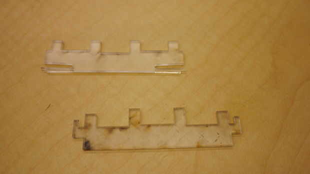 Para este paso hemos optado por utilizar un cortador láser con tolerancias apropiadas en todos los pedazos. He unido algunas de las imágenes de la corte acrílico abajo y para referencia, cada bot enjambre es aproximadamente 3 x 4.