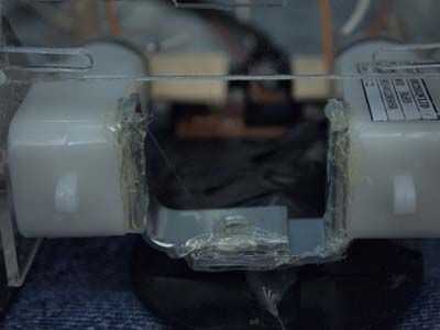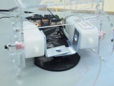 Hay unos puntos importantes aquí. En primer lugar la distancia entre los motores debe ser casi el ancho de una pila de 9V. Esto hace un lugar muy conveniente ubicación para lo que sería una muy difícil de colocar el componente. En segundo lugar tratar de mantener la cabeza vertical de las articulaciones tan mínimos como sea posible. Quieres ser capaz de encajar los componentes de los circuitos dentro del robot, así que mantener tanta distancia como sea posible es imprescindible.