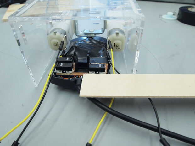 Puede parecer extraño para diseñar un robot que tiene una gran superficie directamente en contacto con el piso, pero los codificadores del ratón tienen que estar a una distancia muy particular desde el suelo o bien su exactitud cae dramáticamente. Colocar una almohadilla de teflon en la parte delantera del ratón lejos el codificador real es una modificación razonable, pero es cerca del límite de lo que los codificadores robusta pueden tomar.