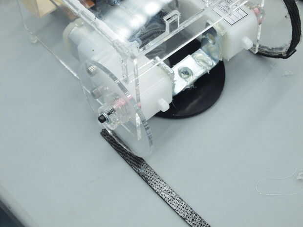 Así, las ruedas funcionará igual, pero el codificador de ratón no es lo más preciso del mundo, y ciertamente no queremos hacer el problema peor por tener nuestro deslizamiento de las ruedas. Hay un montón de maneras de lidiar con este problema, y lo harán todo el trabajo bastante bien. Terminamos tratando de unos métodos diferentes, incluida la compra de alguna cinta del apretón, y correr un cordón de pegamento alrededor del borde de las ruedas se ha demostrado para producir buenos resultados.