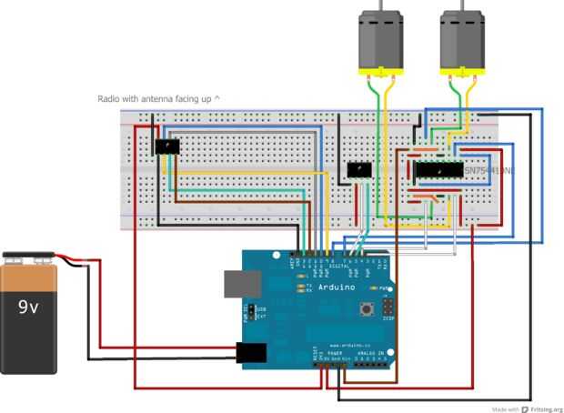 A continuación veremos un diagrama de fritzing de cómo exactamente conectar todos los componentes. El chip con siete cables saliendo de él es el chip nRF24, y el chip con sólo tres cables es el codificador de ratón. El codificador de ratón variará de ratón a ratón por lo que es la única manera de conseguir averiguado por conjetura y cheque. El ratón debe encender el led debe obtener dim, cuando mueves el ratón debe conseguir brillante otra vez y no calienta el chip de la cámara. También algo debe salir en la serie. Si se cumplen todos los criterios el ratón está conectado correctamente.