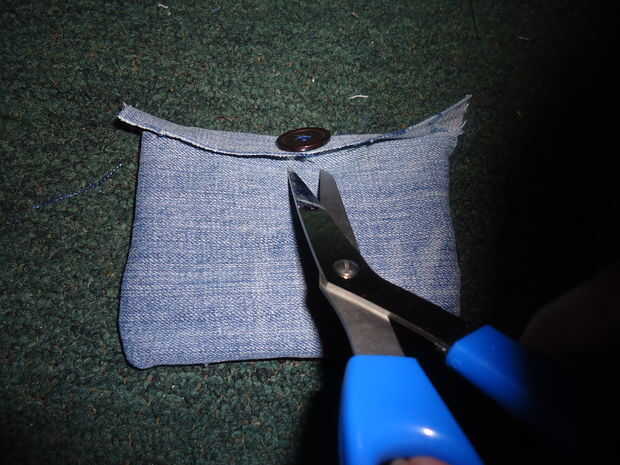 Ahora dependiendo de donde usted coloca su botón, va hacer un corte un poco más pequeño que el botón para que el botón podría pasar a través. Si usted coloca el botón en la solapa como lo hice, luego se corta la ranura
