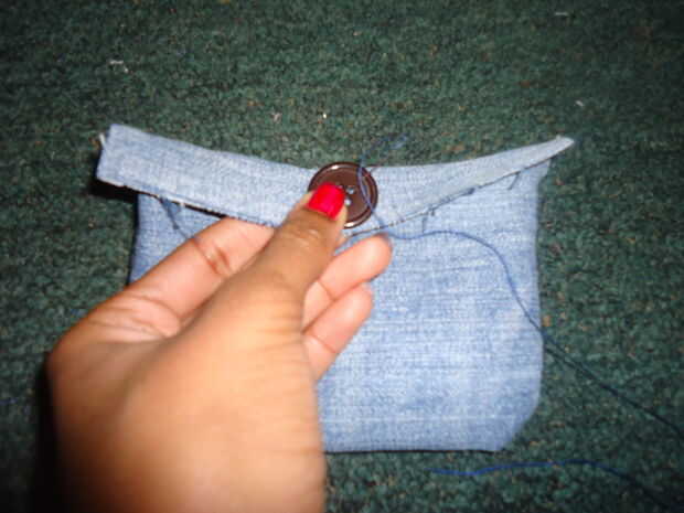 Si desea agregar un botón, luego colocarlo en la parte superior del centro de la parte del bolsillo de su caso (he puesto el botón en la solapa que pude meter en la aleta así no tengo el dobladillo lo veremos más. Usted puede hacer esto también). Cosa que sea necesario.