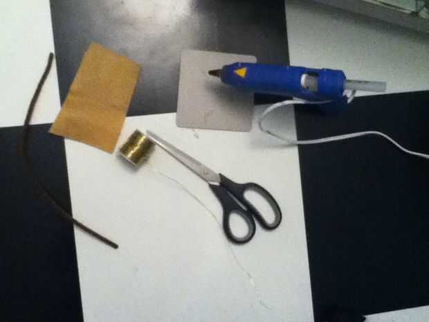 Lo que necesitas es: -un par de tijeras -6-7 marrón limpiadores de pipa -algunos baige fieltro -un palito -un alambre de oro (opcional) - y una pistola de pegamento caliente