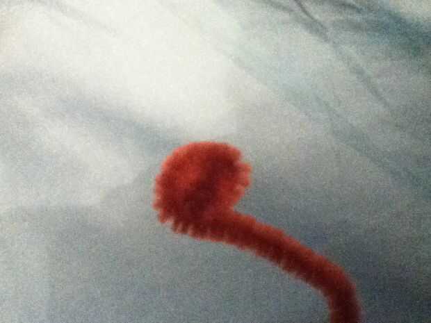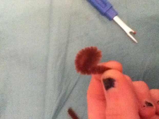 coger un pequeño trozo del limpiador de pipa y envuélvalo para arriba en una bola pequeña, pero plana. Hacer 2 de ellos y dejar la cola un poco al final para que los pueda en