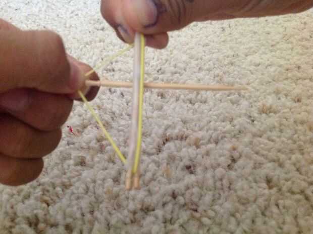 cómo hacer un divertido Cruz arcoPaso 1: materiales Necesita un bolis bic algunos pinchos un cuchillo y unas bandas de gomaPaso 2: atar Atar las gomas alrededor de los 2 pinchosPaso 3: La pluma Ancha las plumas suficientemente para la brocheta pueden