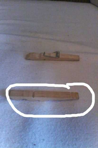 necesita tomar y freno utiliza unas tijeras viejas para hacer el limpiador del freno y, un archivo para quitar los bordes irregulares #1 es el pin de ropa, #2 es wat u debe utilizar (el círculo). puede utilizar ambos lados pero u sólo necesita uno, #3 está roto y lo está usando. Tire la otra pieza. Este es el momento de archivo si desea