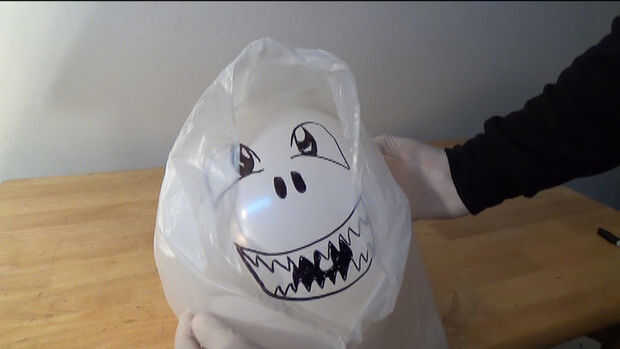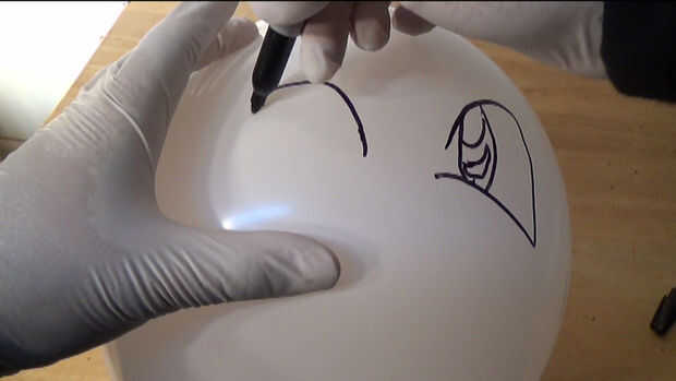 2) poner una cara a tu fantasma, si usted quisiera que mirara miedo o alegría. Lo tiene encima, conseguir tan creativo como puedas. Dibujar una cara en el globo usando un marcador negro.