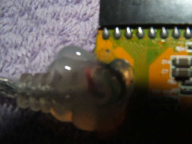 Recuerde que este es un producto chino barato. El USB del cable es no muy bien soldado a la placa de circuito, y cualquier intento de reparar la soldadura de plata con un hierro de soldadura de plomo es condenado. Ya que esta parte va en una posición fija que en tres años no pueden obtener en él, liberalmente uso algunos caliente derretimiento pegamento para sujetar el alivio de tensión moldeado a la platina que elimina eficazmente todo tensión en cualquiera de los cables de soldadura.