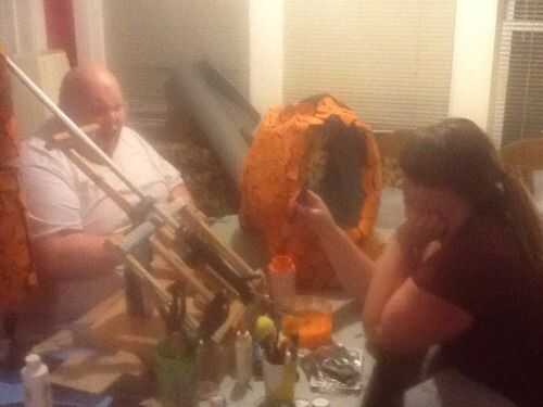 a continuación, pedir unos buenos amigos buenos para ayudarle a pintar la cosa entera. Primero aerosol pintado el traje entero color marrón... y luego tenía mi mano amigos pintar cada "roca" naranja para darle un buen contraste.
