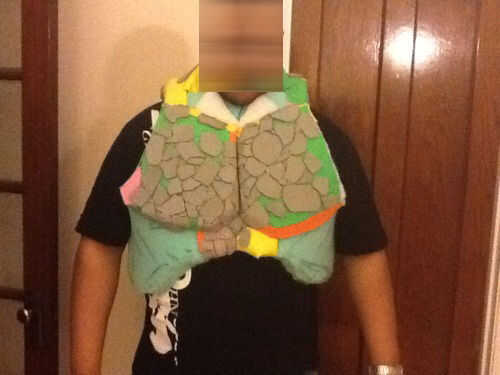 tan primero medido hacia fuera de la espuma para hacer una forma tipo fútbol pad... He utilizado un rotulador para dibujar el contorno.  (solo atención a la forma)... Tomé más espuma y caliente Pecs pegado en lugar. también, hice la parte superior de abs en este... las hebillas estaban pegadas y cerraron a los lados.