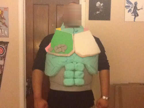 luego hice el corsé para la abs... Tomé la espuma de alta densidad y había hecho un "corsé", que también abrochado en la espalda. había tallado hacia fuera algunas rocas para abs y los puso temporalmente en el lugar.