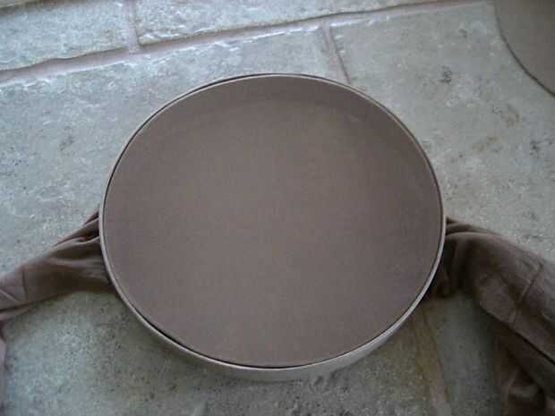 Aquí tire de la manguera de panty en el anillo interior de cartón. Luego poner un anillo de goma alrededor del exterior. Deslice el anillo exterior de cartón en la parte superior de la interna. También quiere asegurarse de que la pantihose se tiró firmemente antes de que pegue. Luego dejar establecido y tiene el pegamento seco.
