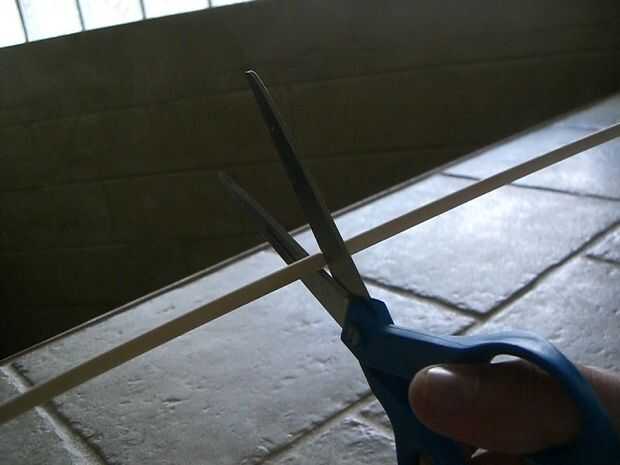 Aquí tomar las tijeras y básicamente la varilla. A moverlos en círculo. Corté la varilla más o menos en medio. Una vez que la barra se anotó, luego sólo doblar en una esquina.
