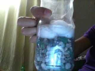 Después las rocas que tienes las bolas de algodón en la parte superior las rocas de la capa Asegúrese de que está realmente cubierto. Las bolas de algodón son muy suaves y eso hará que el agua vaya a mejor y limpiar el agua.
