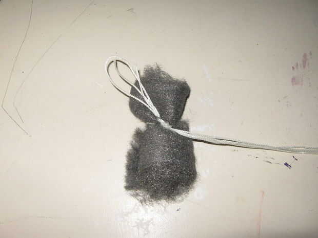 Ate la cuerda a la lana de acero, la cadena debería tener unos 4 pies de largo como chispa volarán por todas partes. Si tienes un perchero práctico sería una buena idea cortar y enderezar hacia fuera y hacer un gancho en el extremo de la lana de acero. de esta manera su mejor causa que no se queme lanzó como lo haría en cadena.