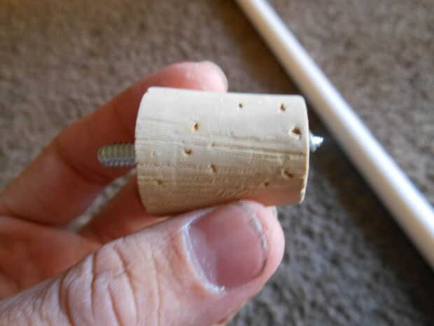 Paso 1: Gire el tornillo de clavija en el corcho hasta que el hilo de rosca del perno es apenas tocando el corcho. Utilizar los alicates para sostener el tornillo y darle que aprovechan para atornillarlo. También ahorrará los dedos contra cortes innecesarios y pellizcos. (El corcho es un material muy suave así que suave al atornillar en para no dividir el corcho por la mitad.)