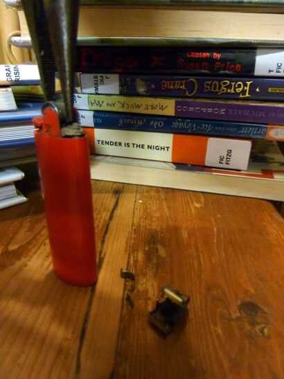 una vez más usando las pinzas, lentamente Quite el cañón. hay un pedernal con una fuente debajo de él y el pedernal se dispara hacia fuera, así que ten cuidado, porque el pedernal es la parte más importante.