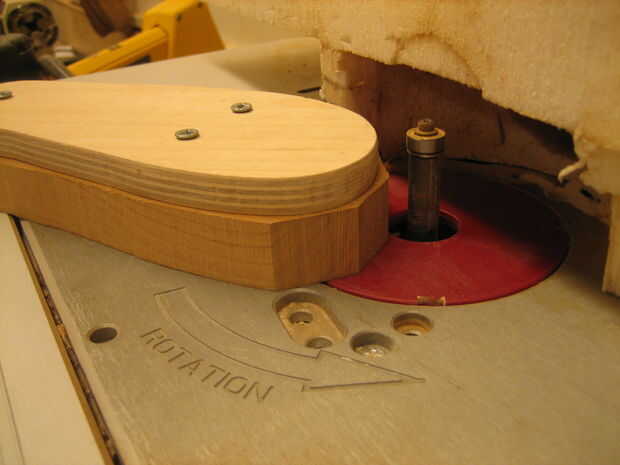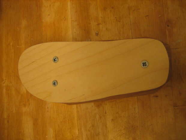 Usar el router para trazar los bordes de la plantilla y recortar el exceso de la pieza de madera que está enlazado a. Cuando crees que haber retirado todo el exceso, desenrosque la plantilla del flip-flop y coloque el lado con los agujeros hacia abajo. Ah, sí. Es la parte bonita que eligió anteriormente.