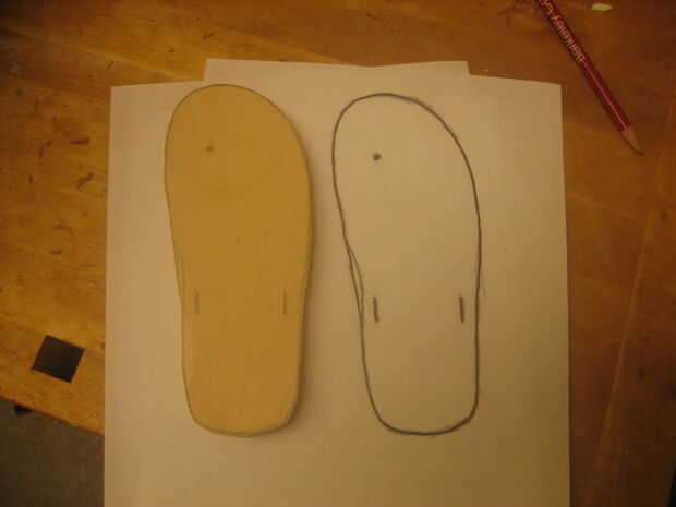 Después de que haya terminado de cortar el flip-flop, rápidamente Comparar con el original y asegúrese de que no existen grandes áreas que olvidó quitar. Es mucho más fácil de quitar con la sierra ya que será cuando lije más adelante.