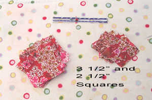 Cortar la tela en cuadrados. El tamaño del cuadrado determina el tamaño de su flor. Puede utilizar todos el mismo tamaño o tamaños diferentes en la misma flor. Decidió utilizar cuadrados de 3 1/2 y 2 1/2 pulgadas y alternó en mi flor para variedad. El número de plazas que será necesario también variará dependiendo cuántos pétalos le desea y cómo grueso es el tejido. La flor en este demo utiliza 7 grandes y 7 pequeños cuadrados de tela de algodón de peso ligero.