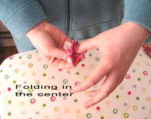 Si usted está confundido en este punto, también puede probar un método alternativo. Siga este enlace. Siga los pasos 1 y 2 de esta instrucción de origami, a continuación, doblar por la mitad para que las aletas triangulares son en el exterior.