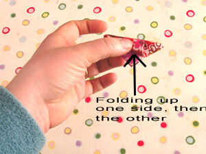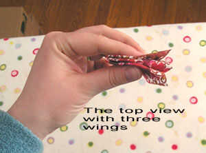 Debe tener un triángulo con bordes brutos, por un lado, dos bordes plegados en otro lado y tres bordes plegados en el lado pasado. Con los tres bordes doblados para arriba, tenemos que plegar las alas externas para que los bordes queden al ras con los demás.
