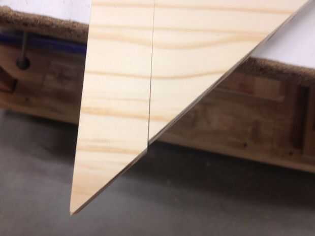 Como mencioné antes, cuando se realiza el corte, parte de la madera esté fuera de la alineación, para solucionarlo sólo puede cortar el sobrante de cada pieza (la manera fácil), o hacer lo que hice y partido el grano hacen un corte plano y un recorte del 45%. (Lo duro).