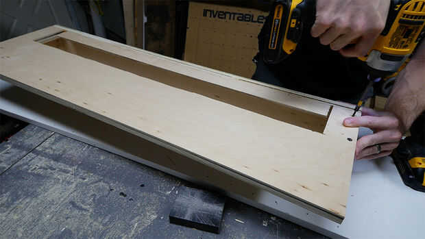 Ahora corte back panel consiguieron pegado y atornillado en la parte posterior de la caja.