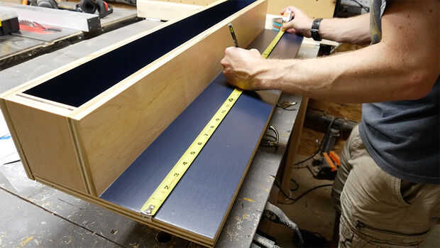En el panel frontal, marqué el punto central, entonces el punto central de cada extremo (dividir la cara en cuartos).