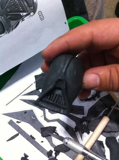 Así que de todos modos... lo 1 º hizo una forma de cara sólida... tipo de grano como forma... entonces sacó un pedazo grande de arcilla y hecho en la forma de un triángulo... luego con un cuchillo del exacto cortar la arcilla y dejar sólo los bordes... y la parte posterior de la cuchilla exacto para darle una parrilla y las dos líneas alrededor de la parrilla...
