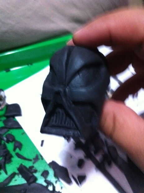 me enteré de que es realmente más fácil de hacerla simétrica cuando cortar ambos lados de la máscara, al mismo tiempo... por tener dos capas de fondant apilados uno encima del otro