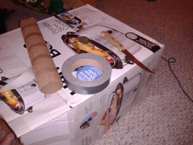 1) una caja resistente que es aproximadamente 1/2 el tamaño de la parte inferior de los árboles o más.