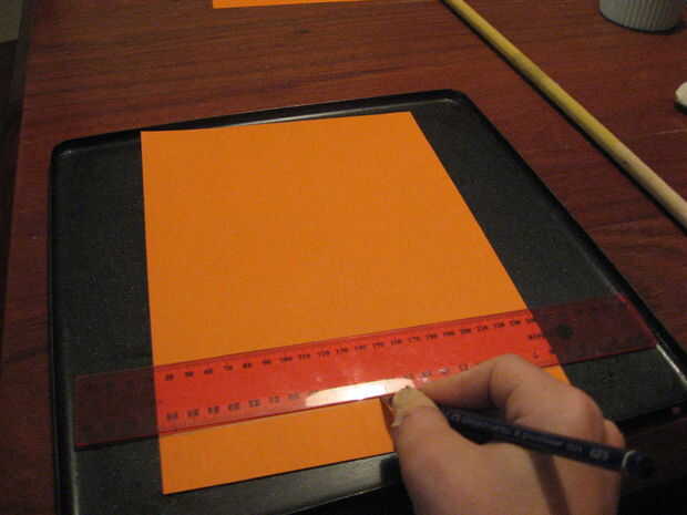 Poner el papel en forma de retrato los bordes más cortos en la parte inferior y superior, ahora marca una línea ~ 1 pulgada de la parte inferior. (Foto 2)