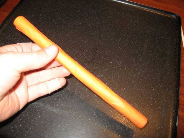 Coloque la espiga de 16mm (el lado con la cinta adhesiva) en la misma y ruede para arriba. Poner el horno a unos 150 grados Celsius y colocar dentro, si no tienes un horno y dejarlo en un lugar cálido para secar. (Foto 5)