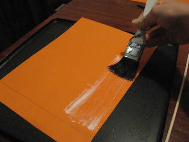 Use el cepillo y el pegamento en el papel en el lado más grande de la línea de izquierda a derecha acción de cepillado. (Foto 3 y 4)