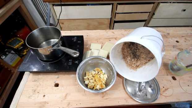 He cubierto brevemente en mi cera hacks instructable, pero es un gran Consejo, cabe mencionar otra vez. Aserrín de cosechadora y cera de abejas, derretimiento y combinar. Después de algún ensayo y error, he encontrado que añadiendo algunos alcoholes minerales, hace que el iniciador de fuego más suave y mucho más fácil de dividir en piezas más pequeñas.