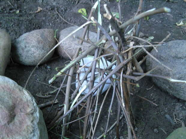 Coloque su iniciador de fuego en el centro del anillo Stick un enfermo en la tierra y lean otros alrededor de él y el iniciador de fuego una vez que han construido el tipi con kindiling y Yesca seguir añadiendo Yesca al fuego hasta que tenga una buena cama de brasas y entonces usted puede agregar combustible.