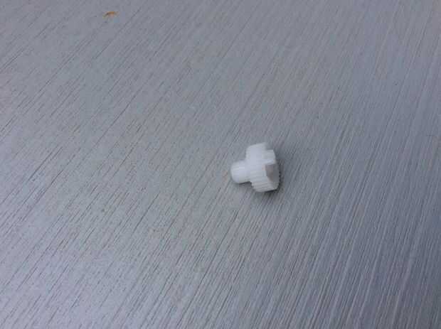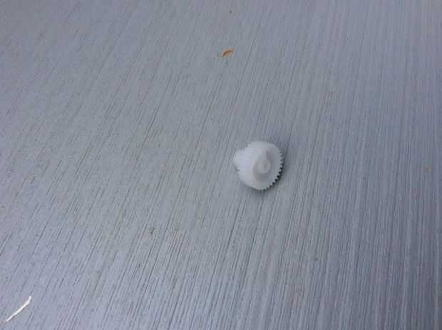 Tomar la pieza inferior del servo y perfore un agujero de aproximadamente 5mm en el middel. Después de eso nos nead para cortar el pedacito del engranaje mayor, revise las fotos para más detalle.