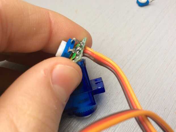 Poner un pequeño pedazo de cinta en el chip en el sercuitboard del servo para evitar shortsercuits (Asegúrese de cubrir los cables de la viruta así).