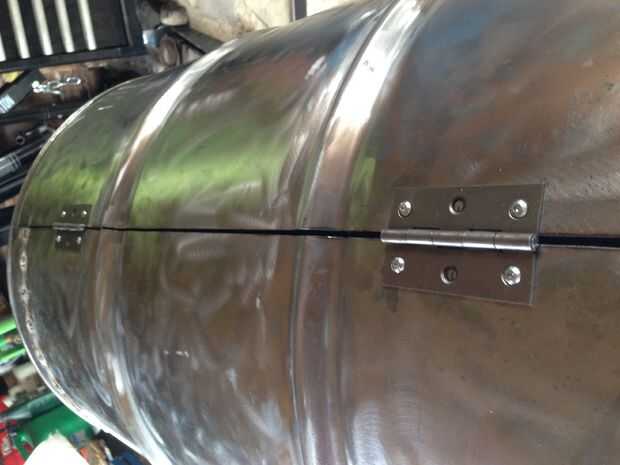 Las bisagras necesitan colocar en el tambor de aceite y los orificios marcan con un lápiz permanente. Es vital asegurarse de que la tapa está en el lugar correcto antes de marcar las bisagras.