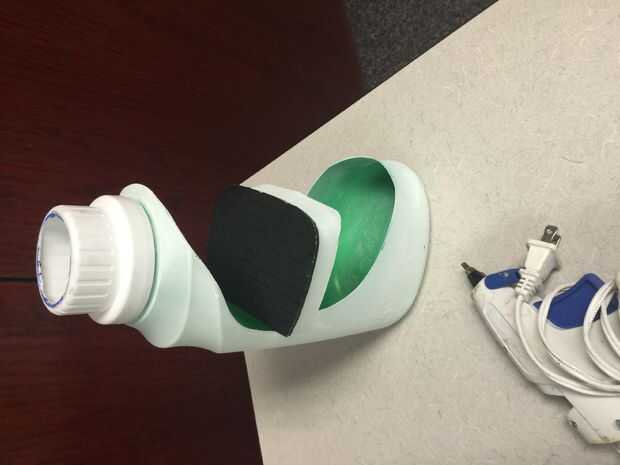 Paso 8: Utilice pegamento caliente para fijar la bandeja de cartón para el estante de la botella de detergente.