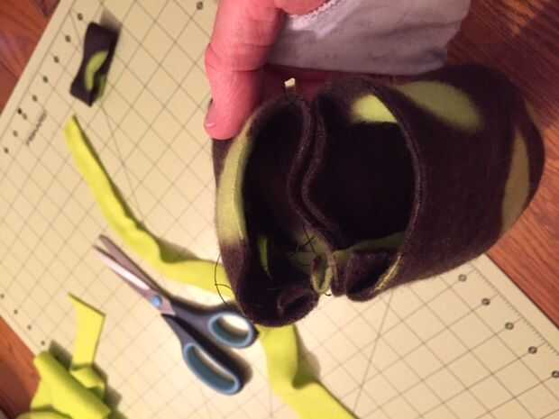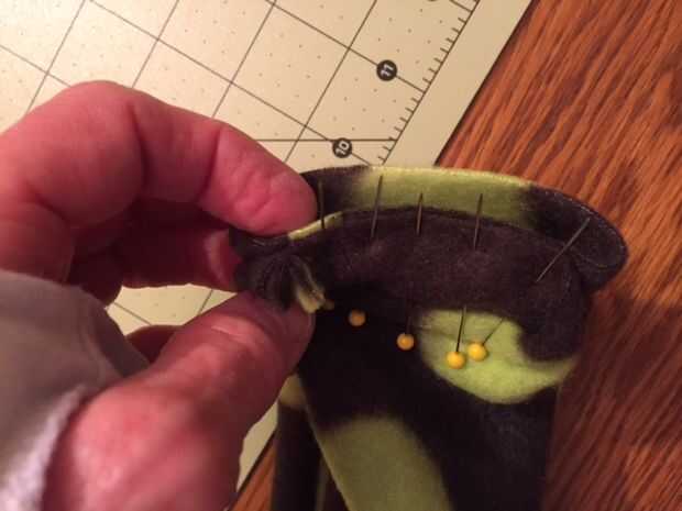 Nota: Antes de coser los extremos juntos, asegúrese de que la venda principal es el tamaño que quieras que sea. Puedes acortar un poco si usted tiene una cabeza pequeña. Recuerde que la banda sea elástica y hay alrededor de una pulgada que va ser tomada por el parecer.