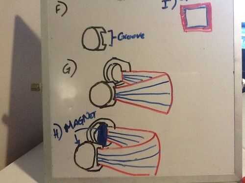 tomar tu 1 "x 1" pieza de espuma de metal y poner algunas en un lado... Éstos se van dentro de la mascarilla (lado a lado de la espuma contra la sien del metal)... ahora los imanes en las tapas de la especia deben "click" sobre las piezas metálicas contra los templos de su cabeza, manteniendo así en su cara