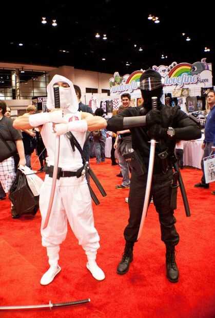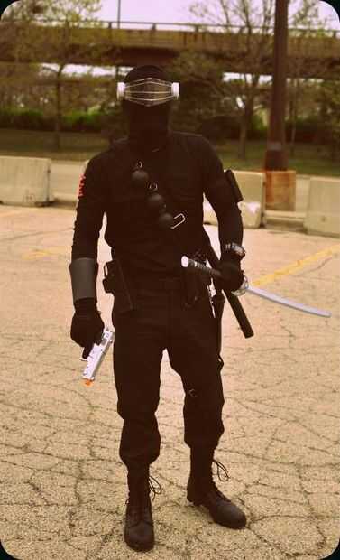 * Ojos de serpiente parece una amalgama de ninja y militares... así que cualquier cosa con las correas, tech, bolsillos desmontables al azar, probablemente tendría... Prestó a mi amigo un reloj espía, hizo un rápida simple brazo protector para su otro brazo... le dio unas bolsas que encontré. probablemente podría añadir rodilleras también si quieres.