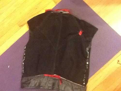 3. mi chaqueta era demasiado grande, así que tuve que volver a coser las costuras para un ajuste más delgada. Lo hice cortando las costuras en los lados y seguridad a fijar en el interior del chaleco para un ajuste más pequeño. Si usted tiene acceso a una máquina de coser o tiene tiempo, puede coser estas parada. (Foto 1)
