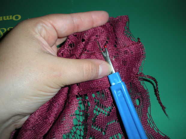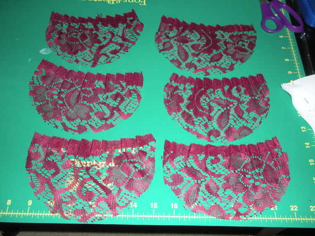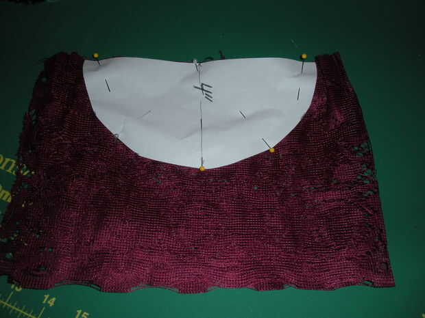 A continuación doble a su tela más de 3 veces para crear capas. Esto le ayudará a cortar 4 piezas a la vez utilizando la plantilla. Con el cordón fino estaba abe doblar esto 5 veces sin ningún problema para piezas de producción 6. Ahora usando los pernos rectos, asegure la plantilla para el encaje y corte.